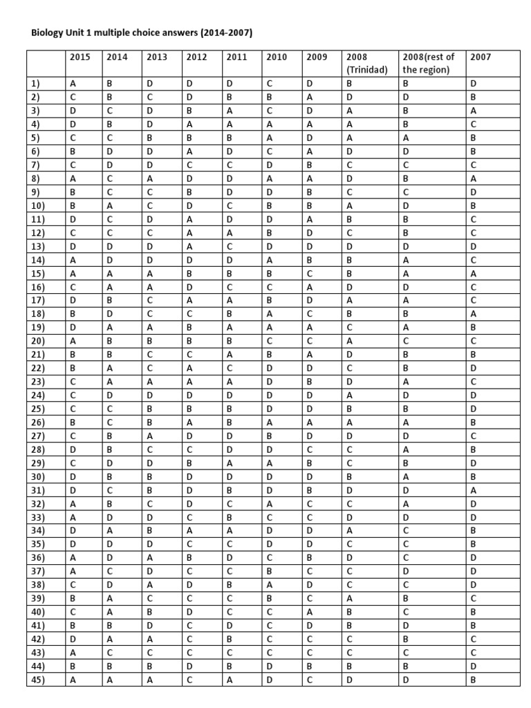 Biology Past Paper Unit 1 Worksheets. CSEC Biology June 2016 P2. Solutions to CAPE chemistry unit 1 multiple choice solutions from 2007 to 2013 of the past exams have the 2007 specimen answers 2008 for Trinidad only and 2008 for.