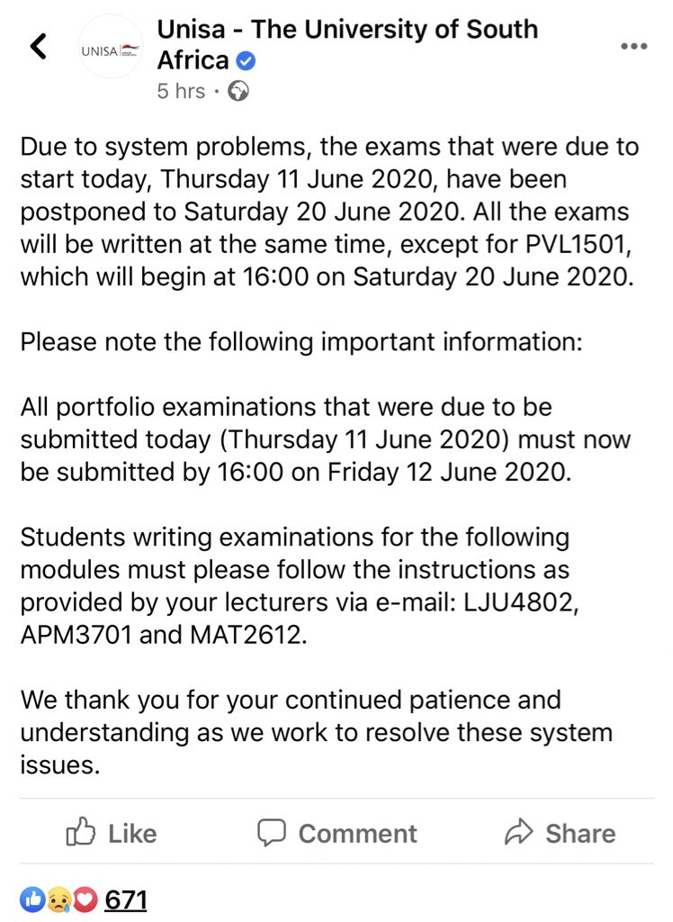 Outstanding MayJune 2020 exam results being released as they are finalised. Any outstanding results will be released as soon as they become available. Unisa Results Date Unisa Examination Results.